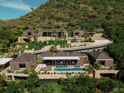 Villa Aqualis nestles into the cliffs of Toiny and Grand Fond, where stone terraces descend elegantly toward the Atlantic. Crafted from natural rock and warm wood, this three-bedroom villa feels shaped by its surroundings, open spaces merging sea, sky, and landscape. Two suites border the main living area beside the heated pool, while a third enjoys private garden access below. Designed for connection and calm, Aqualis is a refined coastal retreat where every view moves to the rhythm of sea and light.