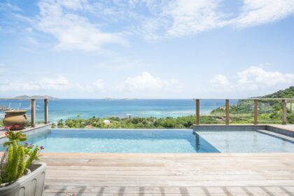 Villa Aurea rises above Lorient Bay like a private sanctuary, offering beautiful ocean views for both relaxation and celebration. The glint of the pool mirrors the Caribbean Sea, while the scent of tropical blooms drifts across open-air living spaces. Each day unfolds effortlessly, starting with morning swims under the sun, followed by afternoons spent exploring coastal trails, and culminating in evenings savoring chef-curated dinners as the sky transforms into shades of coral and gold.