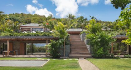 The villa embraces a classic St. Barth beach style, defined by white timber, breezy verandas, and relaxed open-plan flow.