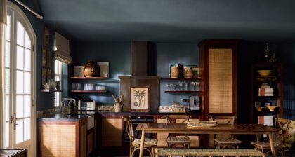 Warm, textured design layers, think old wood, wicker, velvet, linen, botanical prints, vintage checkered tiles, and antique rugs, create a peaceful, enveloping tone.