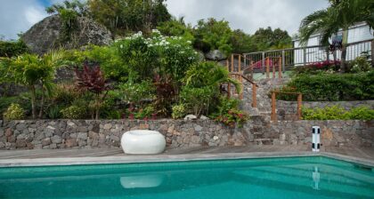 Located high in Vitet, the villa overlooks the valley of Grand Fond and the Caribbean Sea beyond.