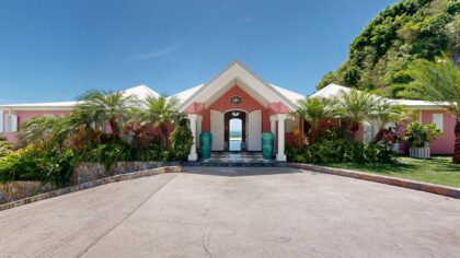 Villa Mustique is a distinguished property high above Marigot, known for its vibrant pink facade, sweeping gardens, and dramatic views. It combines Caribbean character with elegant scale.
