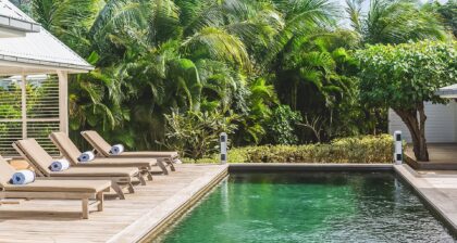 Villa Pastels rests on the quiet hills of Vitet, where light and air flow through modern pavilions surrounding a serene pool. This four-bedroom retreat combines minimalist design with Caribbean warmth, offering seamless indoor–outdoor living across teak decks, pergola lounges, and tropical gardens. Ideal for families or groups, it’s a refined yet relaxed haven where privacy and togetherness coexist in perfect balance.